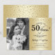 Invitation 50e anniversaire de mariage avec photo. Design élégant en or avec police de caractères script et confettis. Peut être personnalisé pour afficher n'importe quelle année de mariage. À 50 ans de mariage !