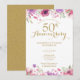 Avec de délicates fleurs aquarelles de jardin campagnard au-dessus et en dessous de vos informations personnalisées d'anniversaire de mariage de cinquante ans en or chic. Le verso présente des confettis dorés. Conçu par Thisisnotme©