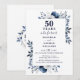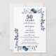 Cette invitation élégante et bleu marine pour le 50e anniversaire de mariage peut être personnalisée avec vos informations en typographie moderne. Conçue par Thisisnotme©