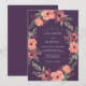 Une couronne artistique de fleurs de prunier profondes et de corail orne ce design romantique. Un feuillage vert luxuriant crée une bordure naturelle et fluide, évoquant une ambiance fantaisiste et éthérée parfaite pour une occasion spéciale.