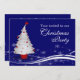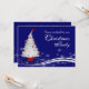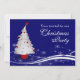 Un sapin blanc de Noël à l'air drôle sur un arrière - plan bleu enneigé. Très mignonne et amusante invitation à la fête de Noël.