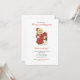 Conception de la fête d'anniversaire de Noël, par red_dress, avec l'illustration antique de la petite fille mignonne, aux cheveux blonds, aux tenues rouges et blanches, aux fleurs de poinsettia rouges et au lapin moelleux (ou lapin) de ses chaussures blanches. La jolie illustration est imprimée sur un arrière - plan blanc, avec un modèle de texte personnalisé rouge et noir. Personnalisez facilement les détails de votre fête.