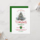 Cet invitation de fête à thème de Noël présente une belle typographie rétro rouge et vert avec un arbre décoré de vacances agrémenté de typographie rouge et verte personnalisable.
