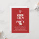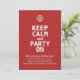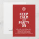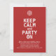 Invitation de Noël amusante avec un flocon de neige et le texte "Keep Calm and Party On" écrit en caractères gras. © Mood 4 Cute