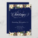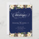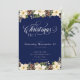 White Christmas Poinsettia blue Party Invitation. Rassemblez vos amis ou votre famille pour votre fête de Noël. C'est un moment de l'année pour des événements sociaux, partager le rire et construire des souvenirs. Le script de Noël blanc avec l'aquarelle Poinsetta, les baies et les cônes de pin est une conception traditionnelle de Noël sur une couleur moderne bleu profond. Voir les autres produits correspondants de cette collection pour un thème cohésif.