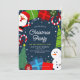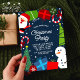 Invités Invitations à votre fête de Noël avec cette mignonne invitation de vacances bleues avec le Père Noël, bonhomme de neige, cadeaux, sucres de canne, arbres de Noël, ornements, une bordure enneigée et un joli motif sur le dos.