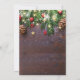 Cartes d'invitation de mariage d'hiver rustique avec un fond en bois sombre, branches d'arbre de Noël festives, décorations d'arbre rouges et dorées et guirlandes lumineuses.