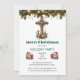Invitation aimait les gens à un rassemblement spécial de Noël avec cette merveilleuse invitation. Doté d'une croix ornée décorée de bougies et de petits ornements, nichée au milieu de branches de pins et de baies, cette invitation reflète l'esprit de la période des fêtes. Deux haies sympathiques dans les chapeaux de Santa joignent la scène, chacun tenant un cadeau emballé, rendant le design ludique et festif. Il y a aussi des ornements suspendus, des lumières de Noël et des glands avec des feuilles verts. Customisez les détails pour en faire une invitation unique et significative.