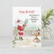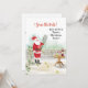Fêtez les vacances sur la cour ! Cette invitation festive de Noël de Tennis comprend le Père Noël sur un court de tennis enneigé, tenant une raquette de tennis, avec des balles de tennis éparpillées, des lumières scintillantes de fée, et une bouteille de vin avec des verres à proximité pour une touche de fête. Idéal pour les amateurs de tennis, les amis et les réunions de famille cette saison de Noël.