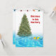 Sapin de Noël avec de l'eau de piscine et jouet de piscine pour l'invitation à la fête de Noël en juillet au bord de la piscine.
