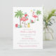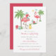Noël en juillet invitation de fête avec deux flamants roses et palmiers avec cadeaux peints à la main en aquarelle, idéal pour invitation vos amis à votre fête de noël spécial.