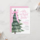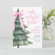 Invitation fête de Noël avec arbre de Noël et arc rose. Oh quel plaisir !