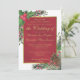Cette belle faire-part de mariage présente un design festif de vacances avec des feuilles de houx peints à la main, des baies, des branches de pin, et des cônes de pin autour d'un cadre en faux feuille doré sur un arrière - plan rouge pourpre marbré. Cette invitation comporte des lettres de script sophistiquées et des formulations officielles où le mariage est hébergé par les parents de la mariée. Parfait pour un mariage à thème de Noël ou d'hiver !