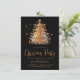 Cette luxueuse invitation à la fête de Noël présente un superbe style noir et or avec un élégant sapin de Noël et un design étincelant. Parfait pour fêter les fêtes avec style, cette invitation saura impressionner vos invités. L'invitation peut être personnalisée pour inclure votre nom, les détails de la fête et toute autre information spéciale que vous voulez inclure. Préparez-vous à accueillir la fête de Noël la plus mémorable avec cette magnifique et sophistiquée invitation.