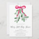 Famille Invitation et amis à votre Baby shower de Noël avec cette invitation festive. Il est décoré avec du faux-pied vert aquarelle, un ruban rouge, et dit "Merry Little Baby shower" dans la typographie stylisée. Facile à personnaliser. Aquarelle originale © Michele Davies.
