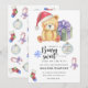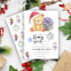"Il y a un bébé beary Sweet en route". Célébrez avec cette soirée baby shower à thème ours en peluche ! Aquarelle ours en peluche mignon avec cadeau de noël, en chapeau santa. Au verso de la carte se trouvent le motif de Noël des Fêtes (sucre de canne, jouet à billes d'arbre de Noël, chaussettes de Noël).