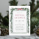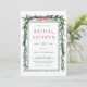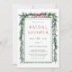 Cette élégante invitation à la douche nuptiale présente une guirlande de pin de Noël aquarelle agrémentée d'un arc de ruban rouge.