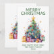 Arbre de Noël avec cadeaux pour la carte de Noël en vert pour un accueil festif de vacances à la famille et les amis.