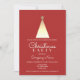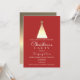 Invitation de fête de Noël d'entreprise rouge élégante et moderne, avec un arbre en pin à motif géométrique minimaliste en feuille d'or.