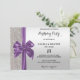 Cartes d'invitation d'anniversaire personnalisées élégantes, glamour et sophistiquées. Avec un beau fond dégradé argent et des paillettes argentées brillantes avec une bordure séparatrice constituée d'un ruban en soie violette d'un effet saisissant. Les détails de votre événement sont imprimés sur le devant de cette carte romantique, tandis que le verso présente uniquement le fond dégradé argent. Il s'agit d'un design moderne, romantique, classe, stylé et à la mode, adapté aux anniversaires des femmes. Tout le texte est entièrement personnalisable pour répondre à vos besoins.