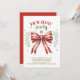 Invitation festive de fête de Noël avec un joli noeud papillon coquette rouge et blanc et un texte rouge et vert vif. Personnalisez avec les informations de votre soirée. Contactez-moi pour obtenir de l'aide pour vos personnalisations ou pour demander des produits Zazzle supplémentaires correspondant ou coordonnant pour votre fête.