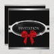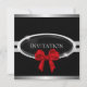 Anniversaire d'événement d'occasion spéciale, célébration, invitation formelle. Plats ovales noirs et blancs avec les étoiles blanches et les arcs rouges lumineux de satin d'équilibres de gris argenté. RSVP assorti disponible sur demande par l'intermédiaire de l'email.