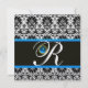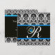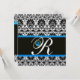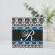 Invitation NOIR BLANC BLEU DAMAS MONOGRAMME Saphir Or
