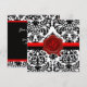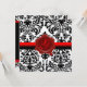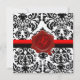 INVITATION NOIR & BLANC DAMAS, MONOGRAMME À LA CUIRE ROUGE OR