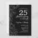 Invitation Noir Blanc Floral 25e Anniversaire
