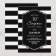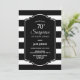 Invitation Noir Blanc rayé Surprise 70e anniversaire Dîner