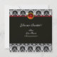 Élégant, classe, design floral unique, œillets noirs et blancs avec une pierre précieuse rubis 3D brillante. Vous pouvez déplacer la pierre précieuse pour la personnaliser avec vos initiales et votre propre texte en tant que faire-part de mariage, cartes de table, save-the-date, fiançailles romantiques, cartes de remerciement, douches de mariée, anniversaire sweet 16, anniversaire de mariage, remise de diplôme ou tout autre événement que vous souhaitez !