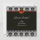 Élégant, classe, design floral unique, œillets noirs et blancs avec une pierre précieuse rubis 3D brillante. Vous pouvez déplacer la pierre précieuse pour la personnaliser avec vos initiales et votre propre texte en tant que faire-part de mariage, cartes de table, save-the-date, fiançailles romantiques, cartes de remerciement, enterrement de vie de jeune fille, anniversaire sweet 16, anniversaire de mariage, remise de diplôme ou tout autre événement que vous souhaitez !