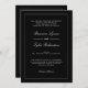 Avec un style classique élégant et une simplicité moderne, ce beau faire-part de mariage allie de belles polices de caractères avec un texte serif intemporel pour transmettre vos détails mariages dans un charme élégant et épuré. Le texte blanc sur un arrière - plan noir avec une fine bordure doublée ajoute juste la bonne quantité d'embellissement à ce design intemporel. Personnalisez le modèle texte facile à utiliser avec vos informations.