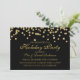 Modèle élégant d'invitation de fête de Noël/fête de vacances/partie d'hiver avec des confettis de parties scintillantes d'or sur le noir. Grand pour employer pour des dîners, des boules et des galas d'hiver, cravate noire/des événements et fêtes au bureau d'entreprise.
