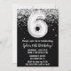 Noir et blanc 6e anniversaire invitation à la fête à l'âge de 6 anniversaire invitation à la fête avec parties scintillant et écriture de script moderne et ballon en papier amusant.