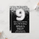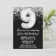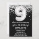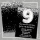 Black and white 9th Birthday party invitation age 9 anniversaire invitation avec noir blanc argent avec écriture de script moderne et ballon en papier amusant.