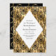 Vintage damas faux feuille or et noir halloween faire-part de mariage gothique.