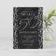 Noir et paillettes argentées fausses 50 50e anniversaire Invitations. Personnalisez pour tout événement.