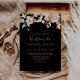 Cette faire-part de mariage royale à fleurs noires est parfaite pour un mariage rustique. Le design est composé de fleurs élégantes, roses, rousses et blanches aux feuilles vert émeraude.