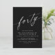 Invitations de 40ème anniversaire simples mais élégantes avec en-tête "quarante" texte dans une police de script. Police blanche sur un arrière - plan noir contrasté.