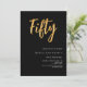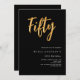 Une invitation moderne et élégante pour une fête du 50e anniversaire pour lui et elle. Arrière - plan noir classique et le mot Cinquante écrit avec de grandes lettres en faux or. Personnalisez et ajoutez un nom et des détails du parti. Texte blanc.
