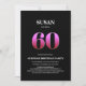Invitation vos amis et les proches à une fête de 60ème anniversaire surprise avec cette invitation minimaliste minimaliste d'anniversaire noir et rose.
