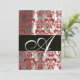 INVITATION NOIR ROUGE BLANC SOIE TISSU DAMASSÉ MONOGRAMME