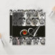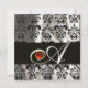 INVITATION NOIR SOIE DAMASSÉE BLANC MONOGRAMME RUBIS ROUGE