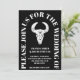 Arc noir sombre Moody Boho Rustic Faire-part de mariage avec le libellé 's'il vous plaît rejoignez-nous pour le mariage de' en forme d'arc avec le crâne à thème boho et arrière - plan en terre cuite. Il est parfait pour les mariage à thème boho, rustique, bohème, moody, désert, minimaliste, sombre, esprit libre.
