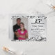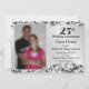 Cette invitation pour le 25e anniversaire de mariage présente un motif damassé noir tourbillonnant en arrière-plan, une bande d'argent ondulée au centre et un cadre photo personnalisable. Un texte personnalisable vous permet d'ajouter les détails de votre invitation.