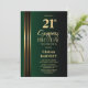 Invitation Noir vert rayé or 21e anniversaire surprise