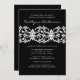 Commencez votre événement outre de la droite avec notre invitation nuptiale de douche comportant une belle damassé blanche sur un arrière - plan noir riche. Combinaison de couleurs à la mode de blanc et de bleu marine. Customisez juste notre invitation avec votre information de wedding shower et vous êtes tous placez pour aller. Disponible dans d'autres combinaisons de couleurs chez www.celebrateitinvites.com