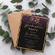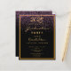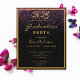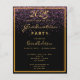Une invitation moderne et élégante pour une fête de remise des diplômes 2026. Élégant avec un fond noir moderne et une pluie de confettis violets. Avec un cadre en faux or. Modèle pour le nom et les détails de la fête. Le texte Remise des diplômes et le nom sont écrits avec un style de lettrage manuscrit moderne. Lettres dorées.