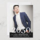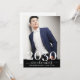 Une année de classe de graduation audacieuse en blanc, avec une photo de graduation moderne chic avec le nom de script overlay invitation partie. Ajoutez vos photos de graduation créative. Convient pour le collège ou le lycée. Style individualiste créatif.